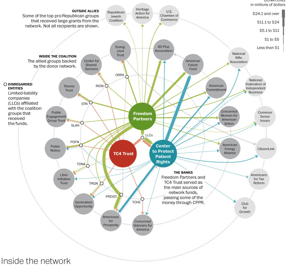 KOCH Network = libertarian think tanks and advocacy groups