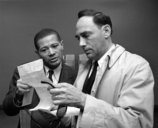 1964 William Worthy, 42, left, and attorney William Kunstler hold an application for new passport and the $10 it cost Worthy to file it at the U.S. passport office, in New York.