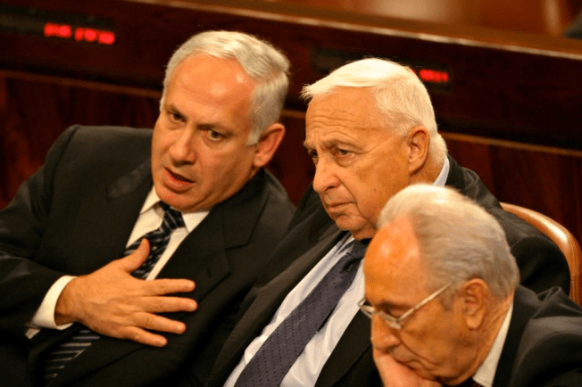 ISRAELI TERRORISTS = Ariel Sharon with Benjamin Netanyahu and Shimon Peres