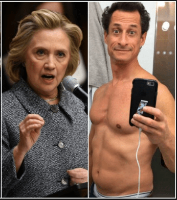 Weiner = Wife is aide to Hillary, Huma Abedin = Sent 14 to 15-year-old online porn and divulging his rape fantasies to the girl and talked on the telephone with the girl.