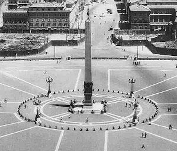 Here is an old photo of the center of St. Peter’s square, and note that around the obelisk, at the center of the huge eight-point sun wheel, is a smaller four-pointed sun wheel, the same symbol as found on the altar stone in the temple of Baal in Hatzor!