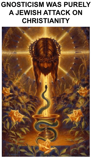150 AD-300 AD GNOSTICS WERE JEWISH-BASED REACTIONARY PROPAGANDA ARTISTS SPREADING DISTORTIONS + LIES ABOUT CHRISTIANITY. THEIR GOAL WAS TO CAUSE CONFUSION ABOUT THE APOSTLES AND BOOKS OF COMING NEW TESTAMENT BY OFFERING EVIL ALTERNATIVES THAT DEGRADE CHRISTIANITY!