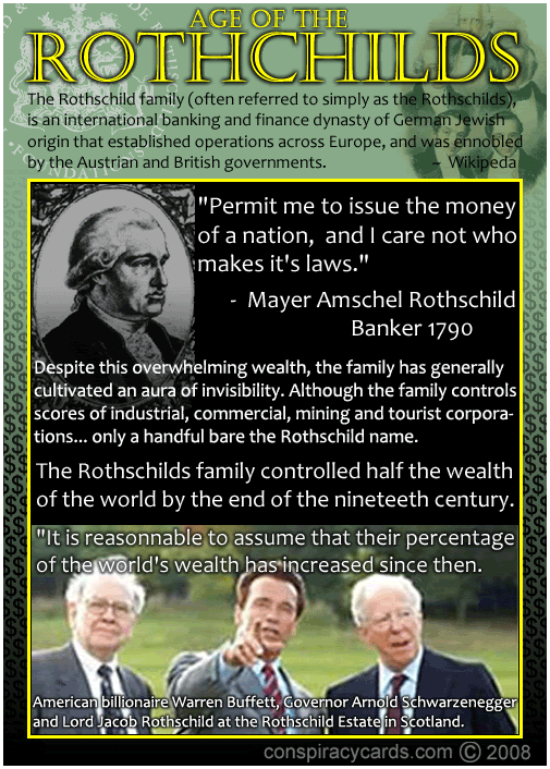 FREE MONEY OUT OF THIN AIR SOMEHOW WAS GIVEN TO THESE CRIMINAL ROTHSCHILDS AND NOW THEY CONTROL 50% to 70+% OF ALL THE WEALTH AND RESOURCES IN THE WORLD!  THE LARGEST MAFIA IN HISTORY!