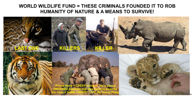 SUB-TOPIC: WORLD WILDLIFE FUND = THESE CRIMINALS FOUNDED IT TO ROB HUMANITY OF NATURE, RESOURCES & PEOPLE OF A MEANS TO SURVIVE!