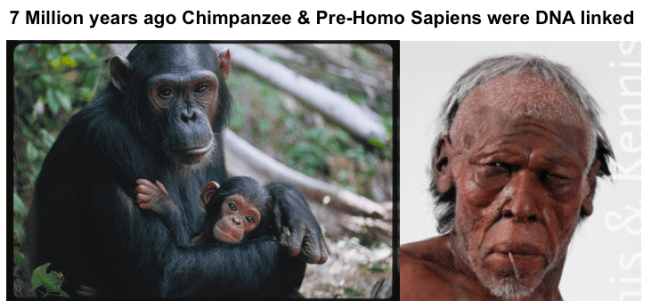 7 Million years ago — Hominina (Sahelanthropus tchadensis), a subtribe of Hominini (now extinct) were close ancestors to humans & chimpanzees. Both chimpanzees and humans have a larynx that repositions during the first two years of life to a spot between the pharynx and the lungs, indicating that the common ancestors have this feature, a precondition for vocalized speech in humans. This sub-tribe was the latest common ancestor of humans and chimpanzees and both separated into different branches.